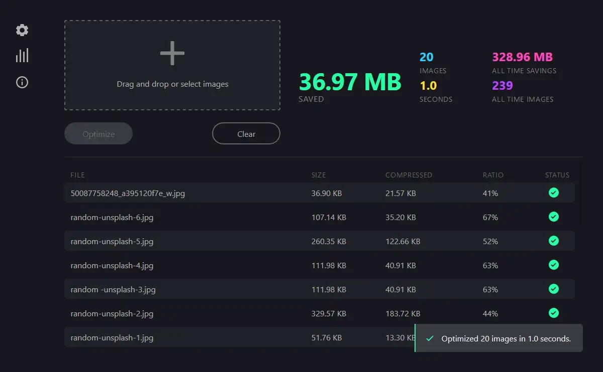 Optimus est une application d'optimisation d'image de bureau. Il supporte la conversion et la compression entre les formats d’images WebP, JPEG et PNG.